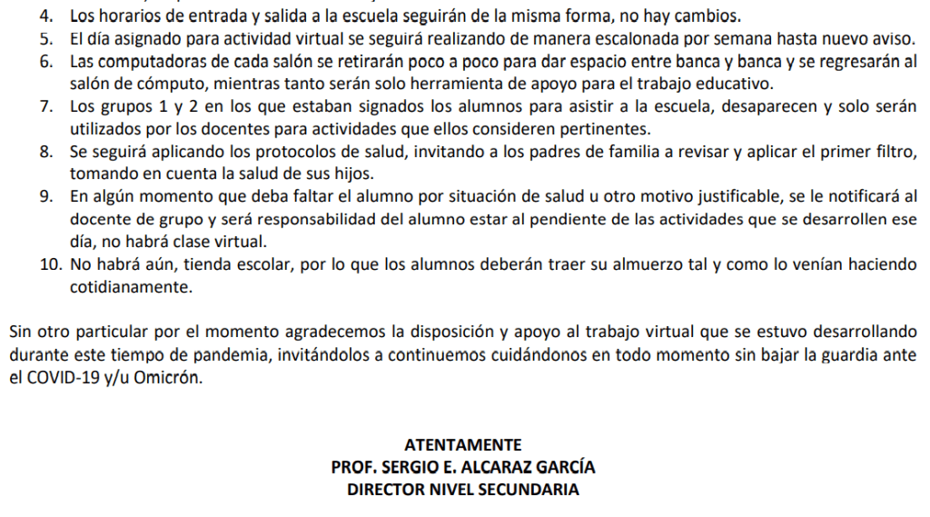 REGLAMENTO ESCOLAR SECUNDARIA 2021-2022