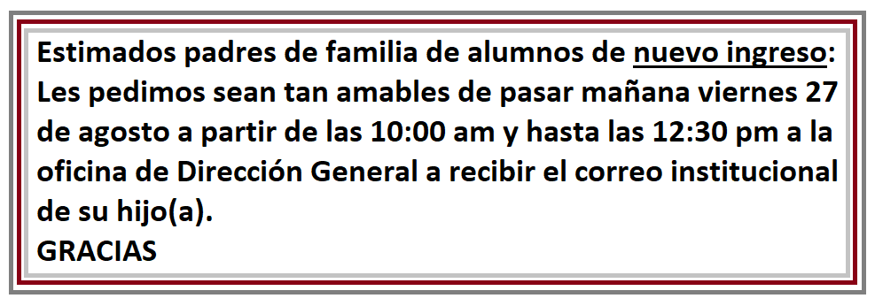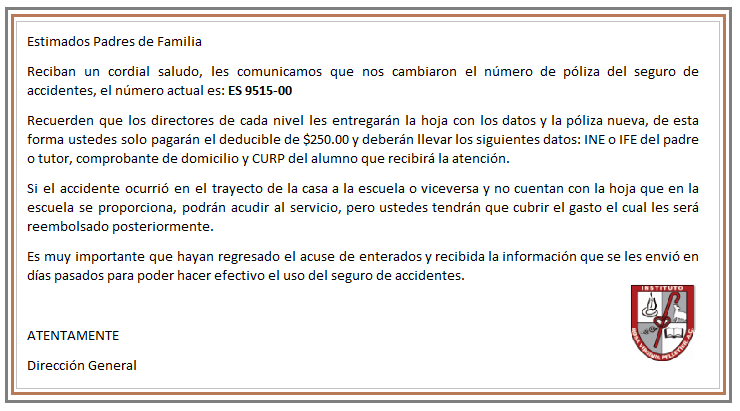 Estimados Padres de Familia: reciban un cordial saludo, la presente es para solicitar sean tan amables de revisar el documento del cual se anexa el link, por favor impriman y entreguen en el instituto el miércoles 25 y el jueves 26 de agosto en un horario de 10:00 am a 12:30 pm. GRACIAS