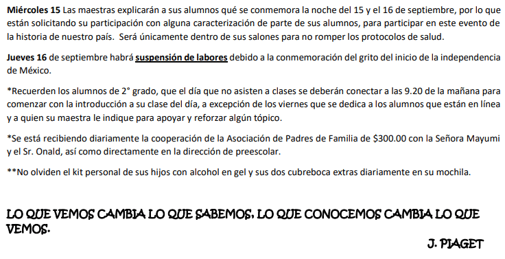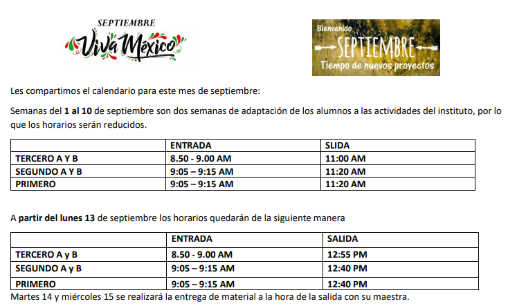 Estimados Padres de Familia, les hacemos llegar la circular informativa para que estén enterados de fecha de la primer reunión, fecha de inicio de clases, horarios, etc.